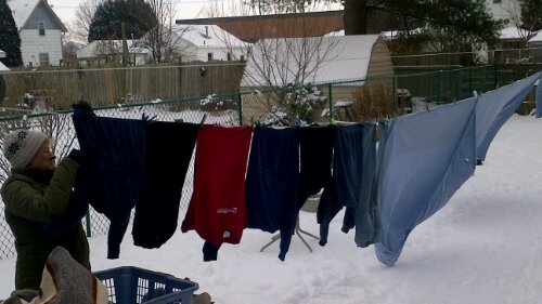 The winter thaw has departed so it’s back to winter for the duration, the length of which remains to be determined. We have had about 12cm of snow in the last 36 hours or so and tonight’s low temperature will be around -12. Good curling for curling up on the couch with some movies. Our choices are In Her Shoes, Chasing Amy, The Human Stain, The Ides of March, and Swing Vote. Not sure which one or two will catch our interest.
