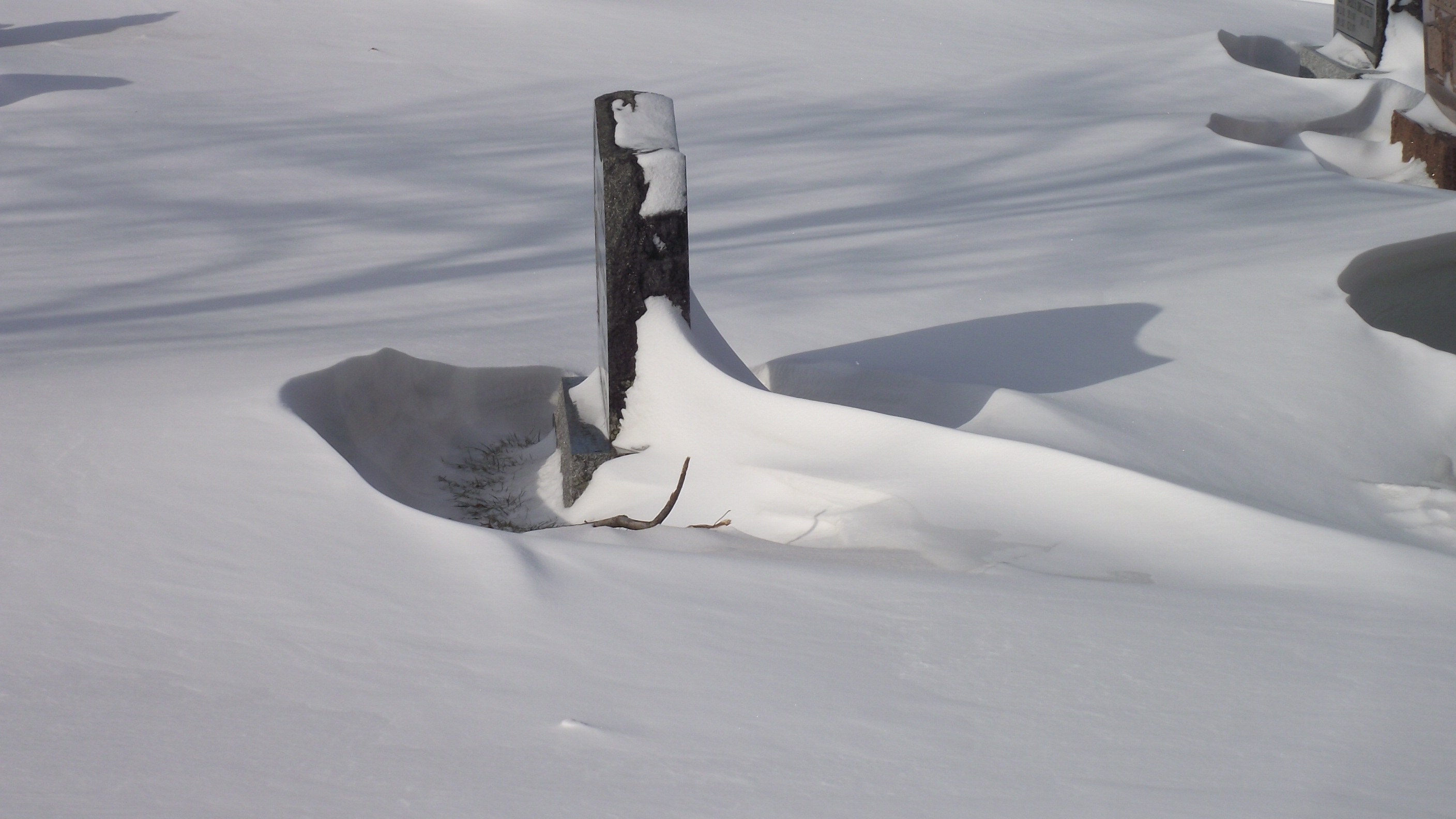 Friday’s gale-force winds blew snow around the tombstones in Dresden’s largest cemetery, which we enjoy walking through. The snowdrifts’ shapes and patterns were, are, beautiful.