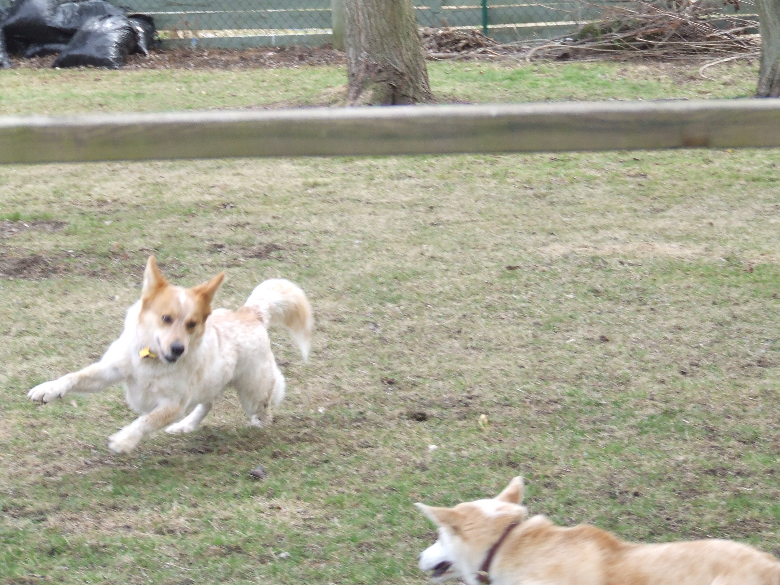 Full speed and flat out he reaches the speed of sound. Zoom zoom. Hackles up but Stella’s facial and head expression was still playful. Achilles swept past and came in for one (or more?) strafing runs.