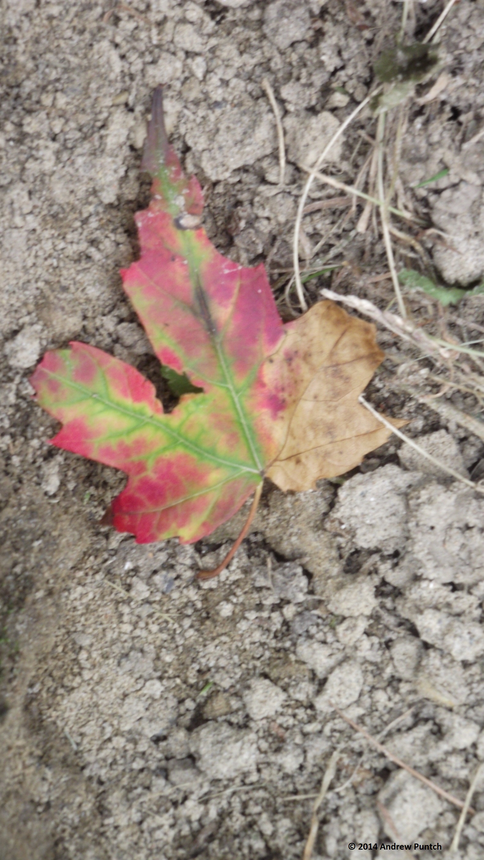 I almost overlooked this maple leaf. It was lodged in sand at the edge of the stepping stones, a place I walk several times daily. I’m normally looking up, around, yet I looked down and saw this.