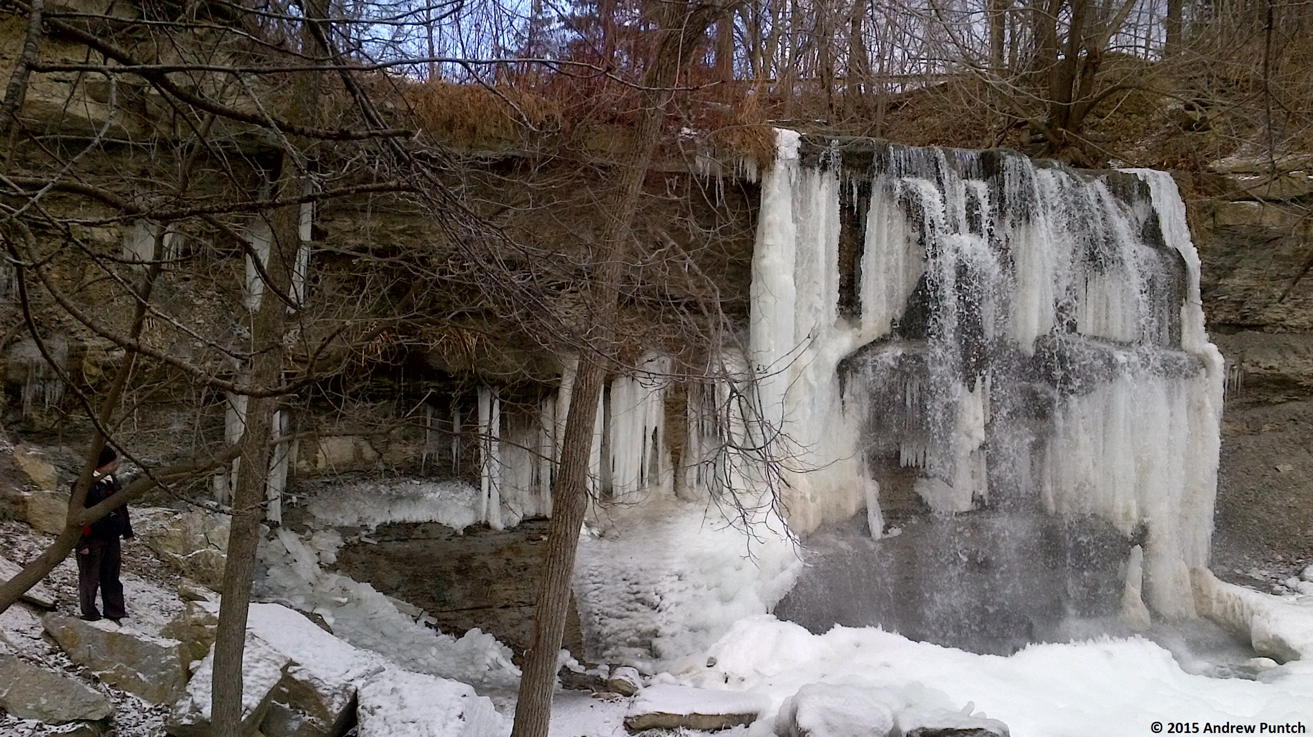On Friday Faye and I day tripped to Rock Glen Conservation Area. The waterfall was only partially frozen. That’s Faye on the far left, which gives a sense of scale to the waterfall. It was a real treat; we agreed that we need to return in the spring and summer.