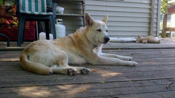 Achilles, also known as Chili dog, looking very thoughtful.