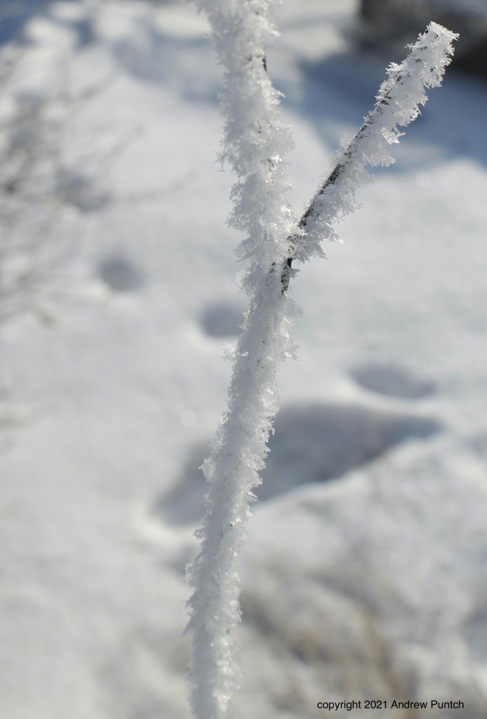 We had a lovely, calm, clear night and morning which resulted in hoarfrost forming in this twig.