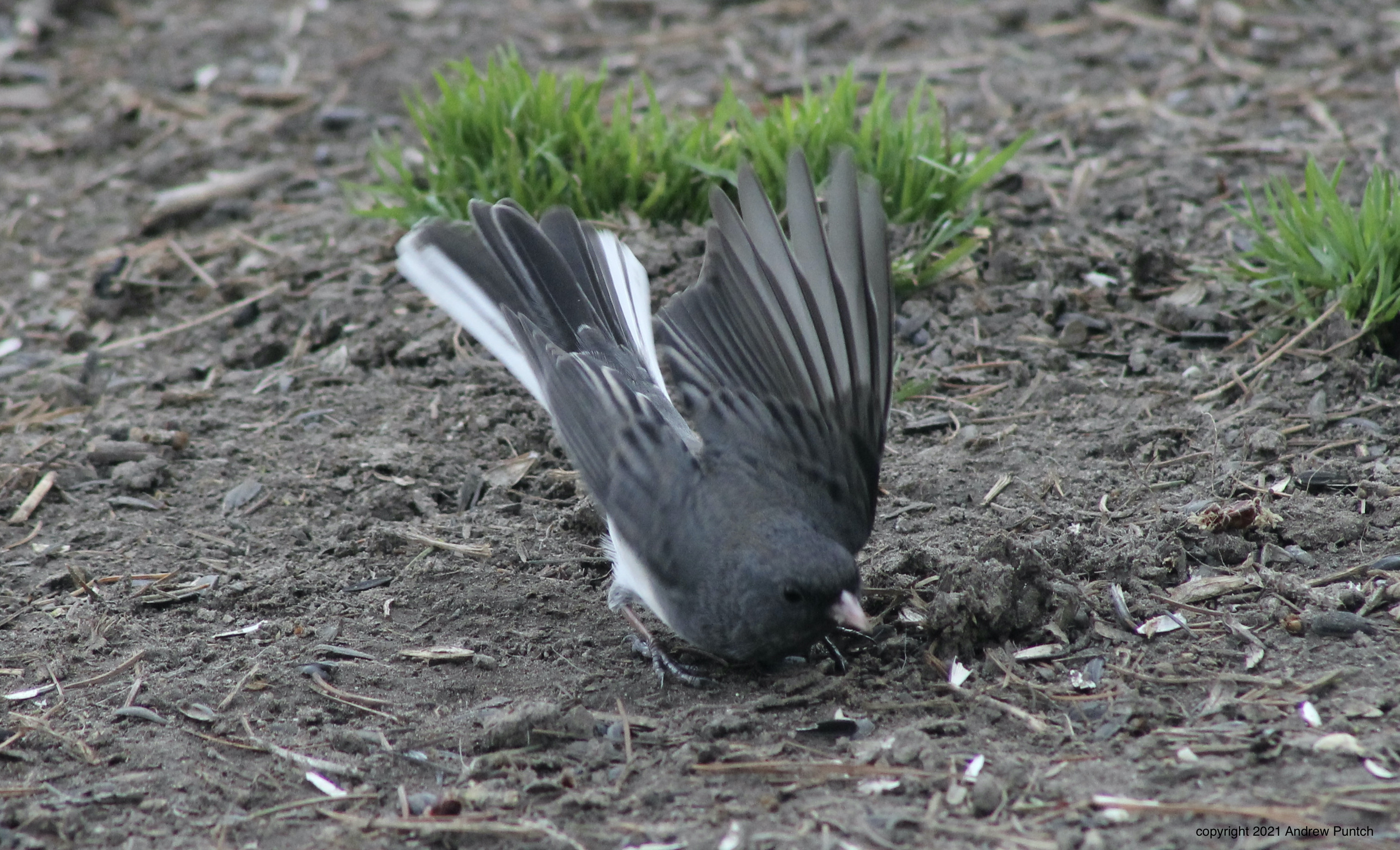 Display. The (presumably male) Dark-eyed Junco appeared to display to a female. Share this: Click to share on X (Opens in new window) X Click to share on Facebook (Opens in new window) Facebook Click to email a link to a friend (Opens in new window) Email Click to share on LinkedIn (Opens in new window) LinkedIn Click to share on Pinterest (Opens in new window) Pinterest Like Loading...