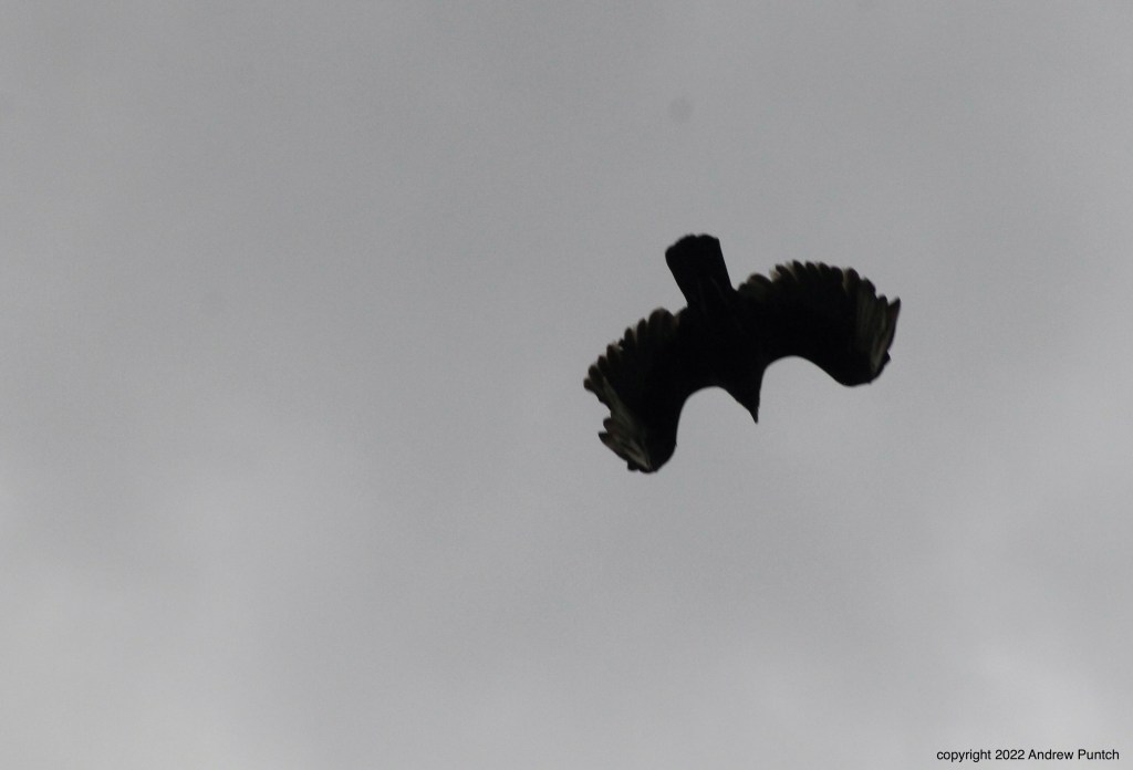 Yesterday evening a decaying thundershower moved in, and an outflow gust front from it brought brisk and gusty wind. Turkey Vultures returning to their nearby roost rode the wind and put on quite an acrobatic show, wheeling, tilting and rocking, power diving, a few blowing through at less than treetop height.