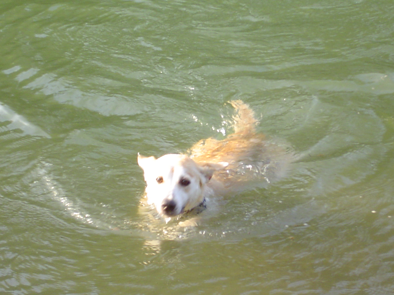Some people prefer to leave their home on a holiday weekend – to camp, go to the lake, visit friends or family, and so on. Faye and I prefer to stay close to home. It’s an atypicial summer day, cloudy, about 22 degrees, with a refreshing east-northeast breeze. So far today we have tended to chores and have walked the dogs. We took Kendla on a short walk then while Faye settled him in the backyard with a marrow bone, we took the cattle dogs on a longer walk along the river. We discovered that the black raspberry bushes and the mulberry trees along the riverbank are bearing. I think we will go back during the week to harvest. Stella got an off leash romp and of course took a dip – she is actually a duck disguised as a dog. Come see what I mean.