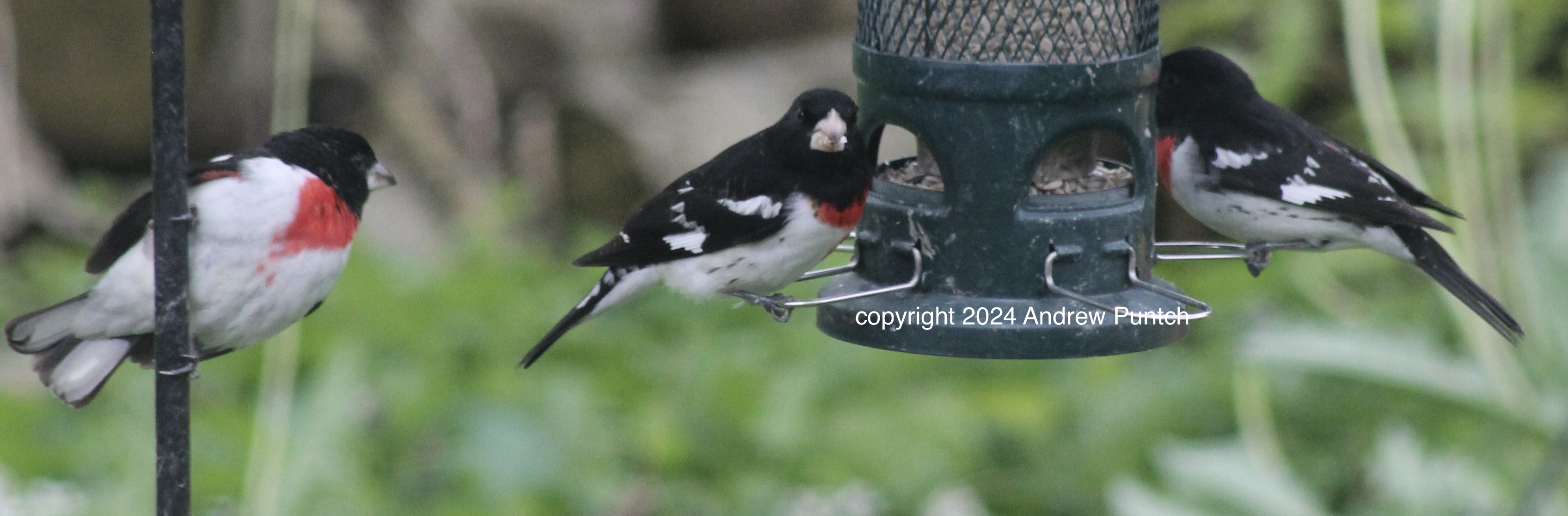 Three Rose-breasted Grosbeaks contested space at a feeder this afternoon. I have never seen more than one at a time this year as well as past years.