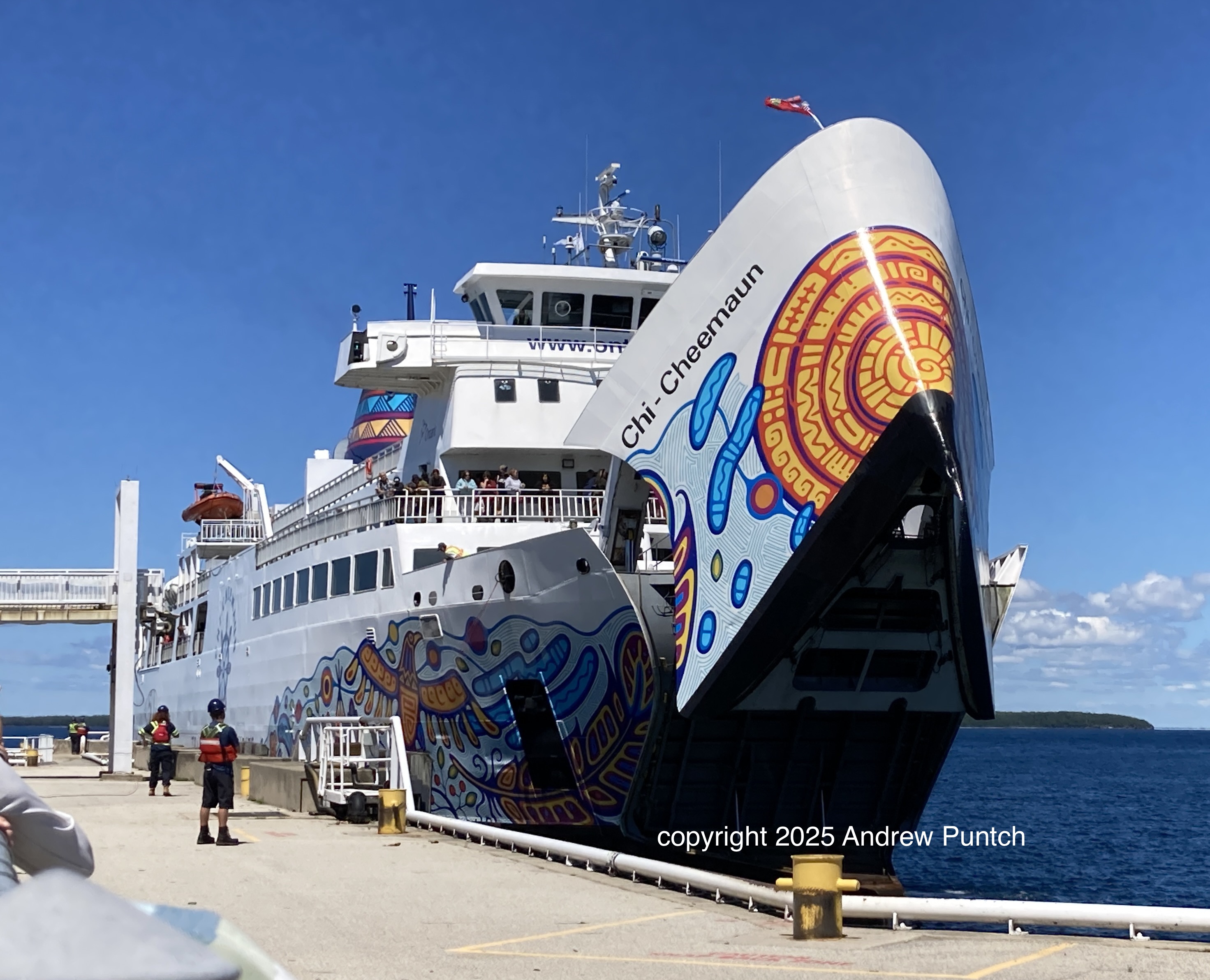 We recently journeyed with friends to Manitoulin Island, at the north end of Lake Huron, for a short holiday. There are two public ways to get there – via a bridge at the north end of the island, or via the Chi-Cheemaun car/passenger ferry from Tobermory, at the end of the Bruce Peninsula. the ferry made the most sense for us.