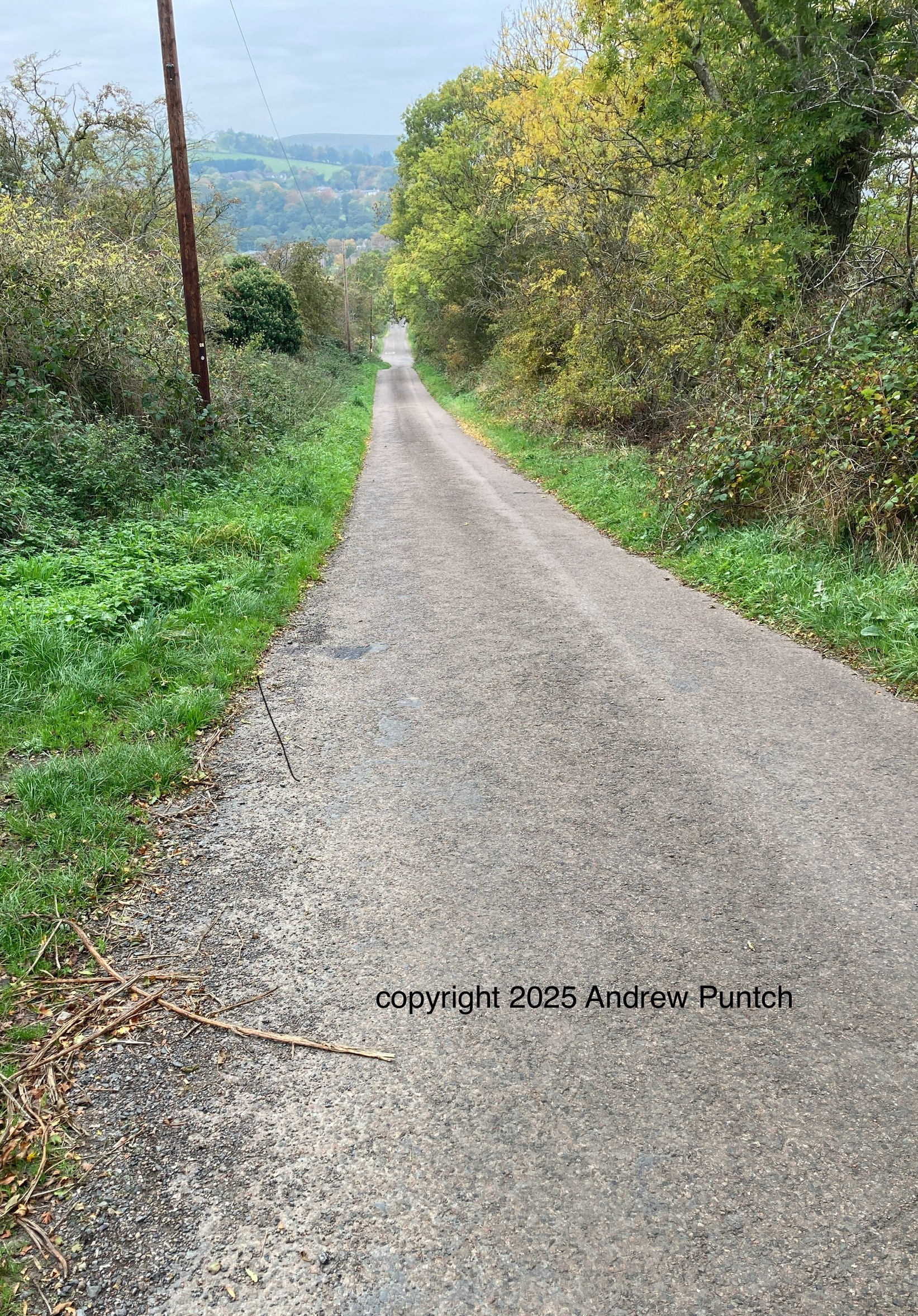 We walked country lanes several times during our time in England and Wales. While it’s difficult to tell, this lane outside Wooler led up a relatively steep slope, which we looked back down after gaining the top of the slope . . . then led us up another steep hill.