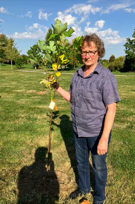 You can choose a specific tree from the available ones, all of which are native to southwest Ontario. We chose a Tulip Tree because a tulip tree seed sprouted unbidden and unexpectedly in our yard about the time Lucy also unexpectedly came into our lives.