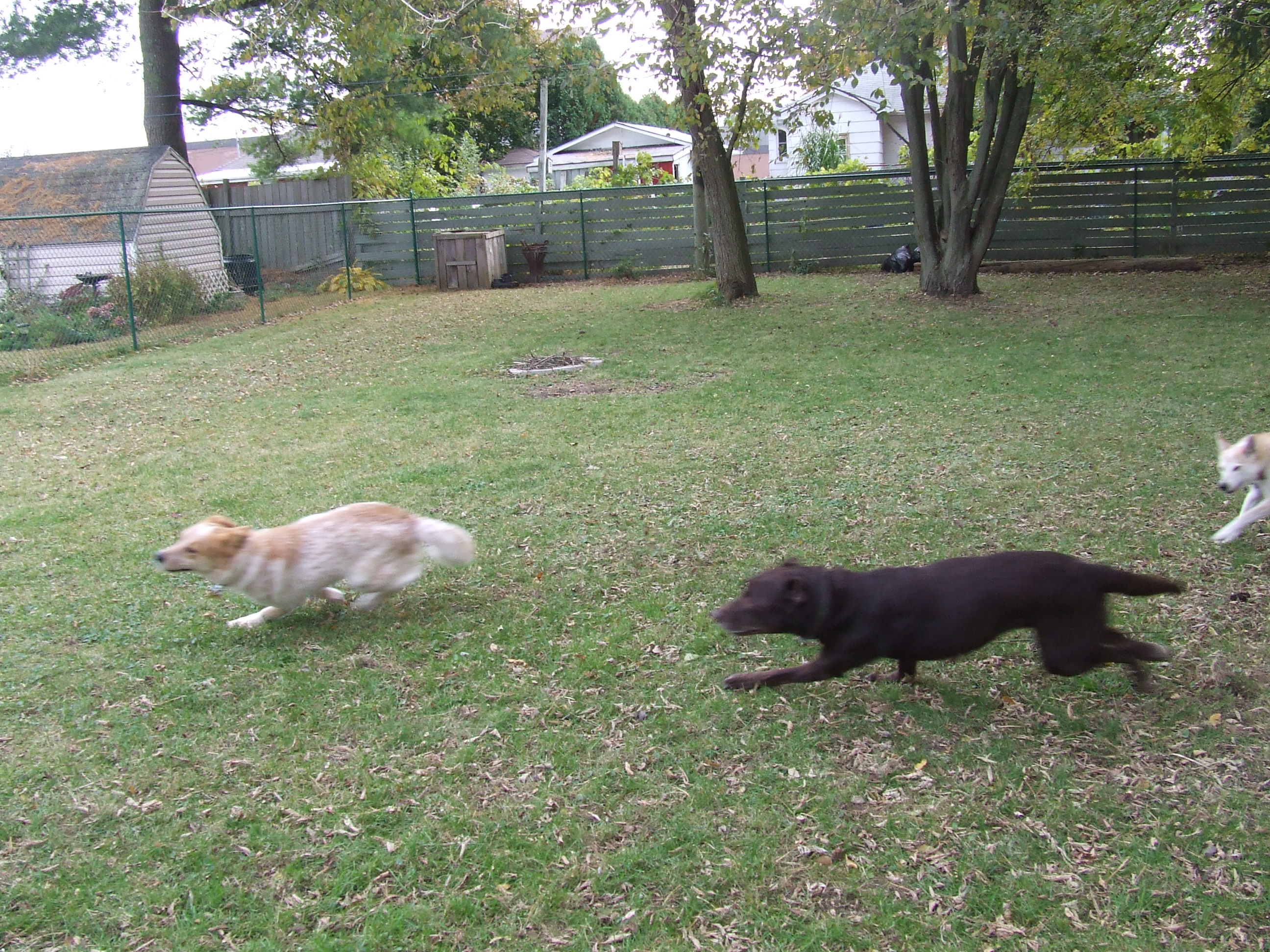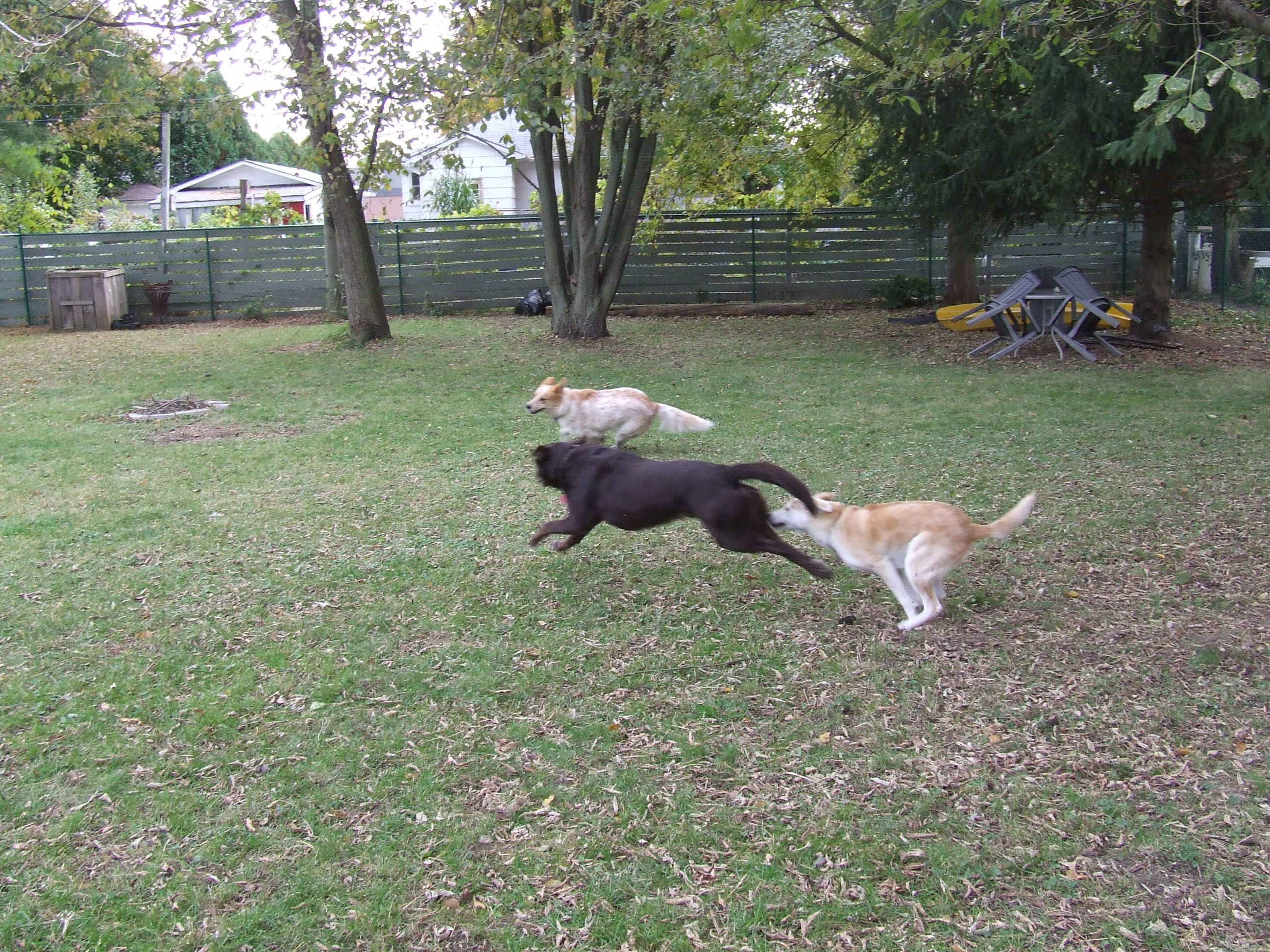 Chase games happen less frequently now, the dogs are older. While it would be easy to be sad about that, I prefer not to be. I look at these photos and smile. I look at Stella and Kendal now, several years on. They are crashed on separate dog beds on the deck. (I would look at Achilles but he is inside, crashed on the love seat. They are our dogs. They are good dogs.