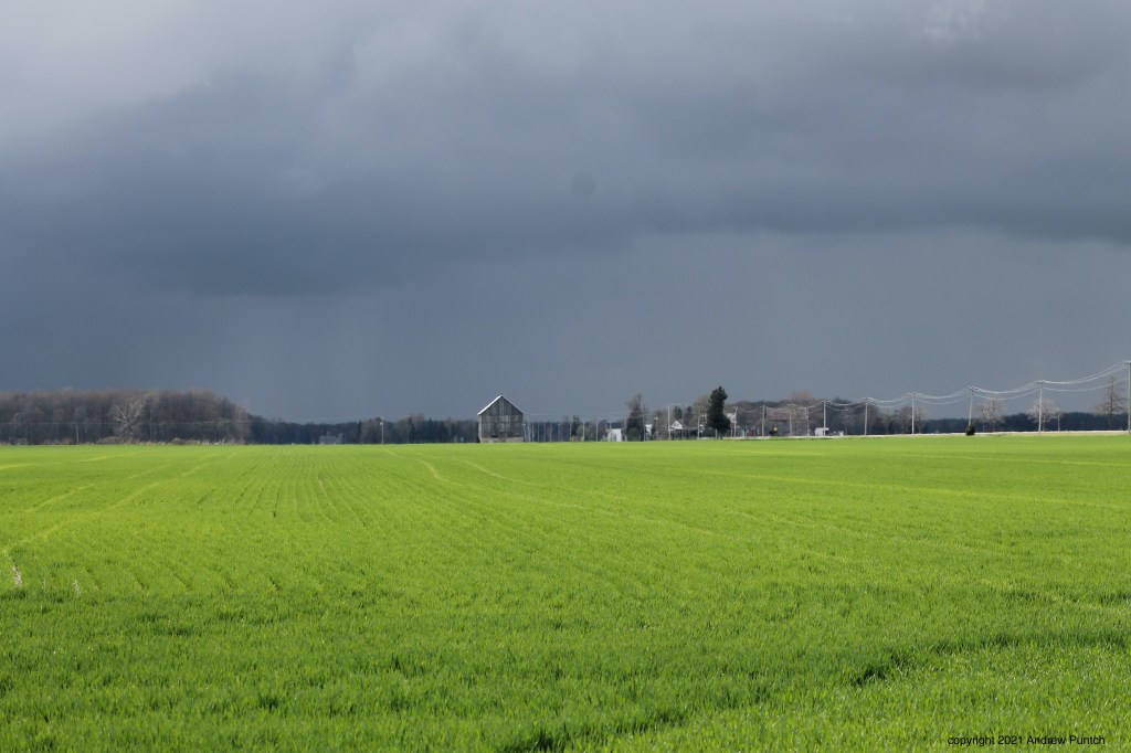 On a hazy and very hot morning, winter wheat awaits the combine.