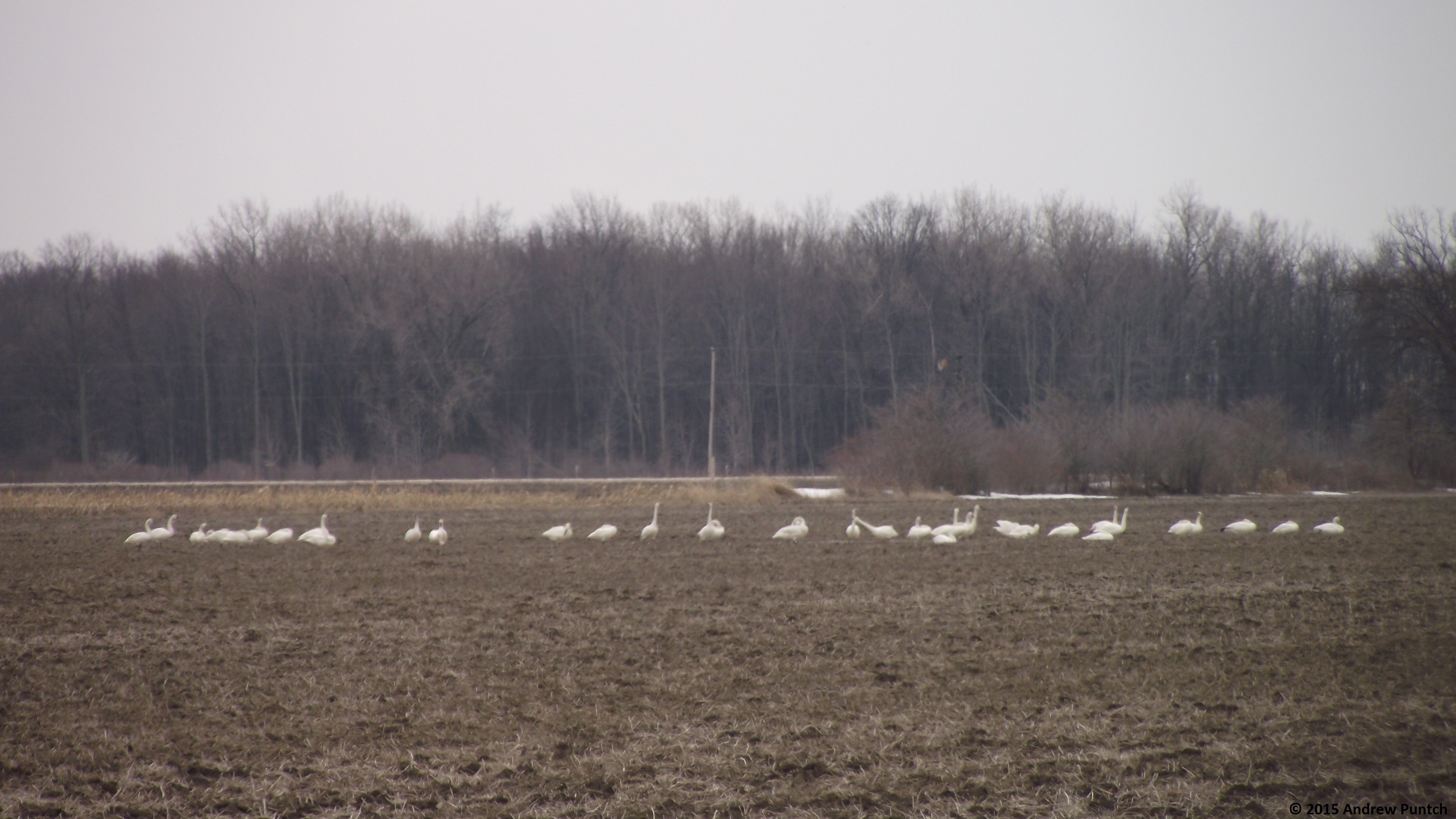 Tundra Swans, Cygnus columbianus (link to allaboutbirds.org), are majestic, breathtakingly marvellous birds to watch. As they migrate through our part of the world on their way to their breeding ground, many stop and rest in harvested corn fields. When resting they congregate in large flocks that sometimes number in the hundreds or thousands.