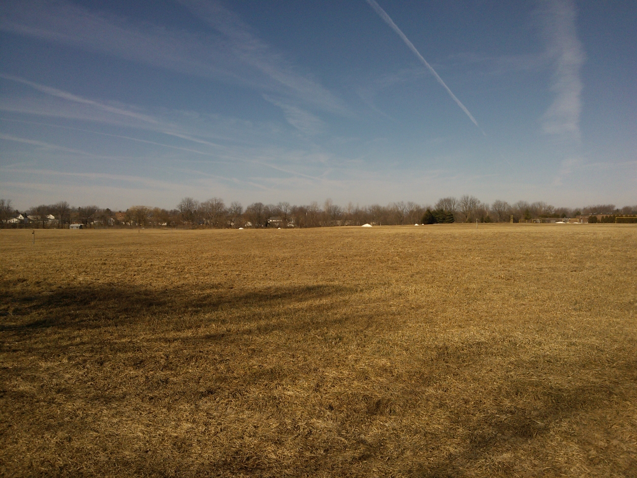After a winter of nearly unrelieved white, the brown and tan of dormant grass is pleasing to the eye.