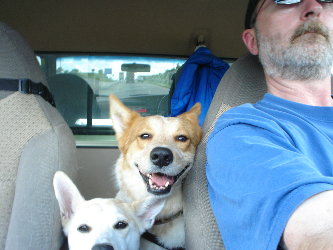 Having said that it gets decent mileage (22-25 mpg highway), is fairly comfortable for two people, and the stereo has no blown speakers so it still rocks. I do not permit the dogs to ride in the bed so two dogs fit somewhat comfortably behind the seat, which is where Achilles and Stella rode when I moved to Canada. Three can be stuffed in for short trips.
