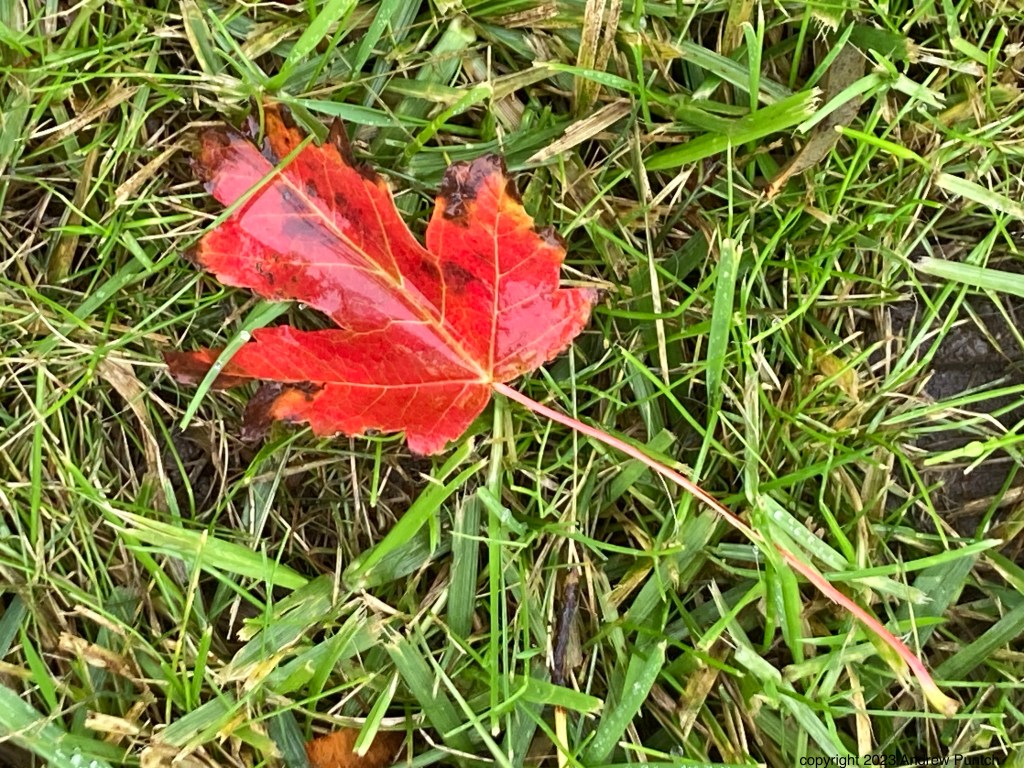 The Silver Maple at the edge of the yard shed this brilliant leaf.