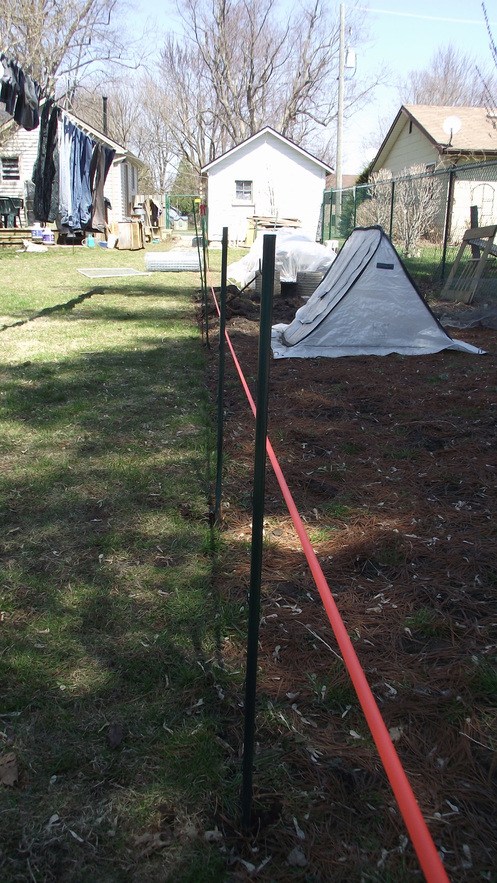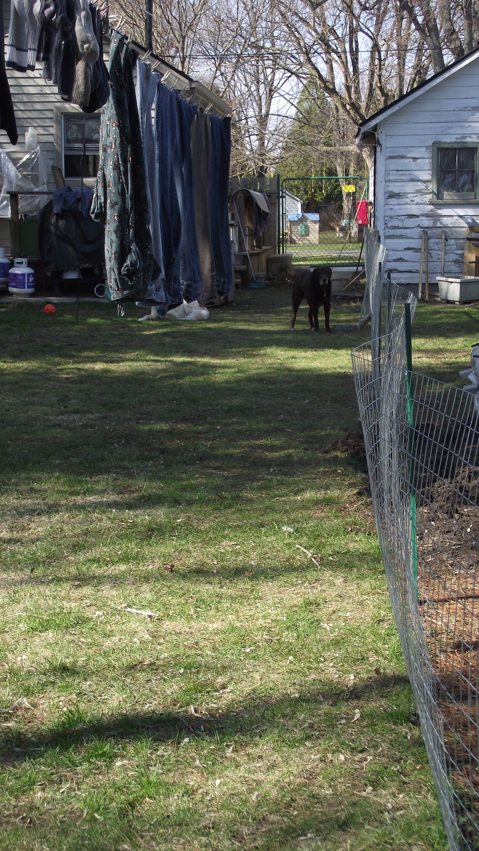 We have more work to do. It includes taking the slack out of the fence, installing permanent gates, roto-tilling after the ground dries a little more, mulching, and relocating the clothes line.