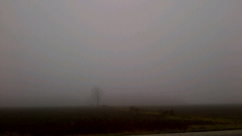 This morning is quite chilly, about -11. Fog settled in shortly before I left home. It was patchy and very dense in a few areas. At one point the sun peeked out so I stopped to capture the scene.