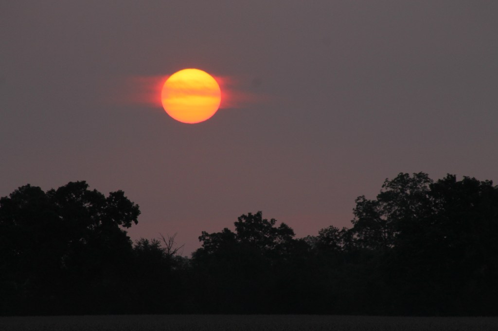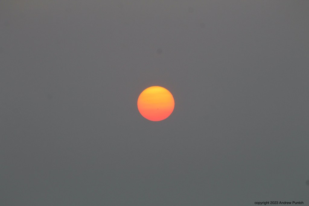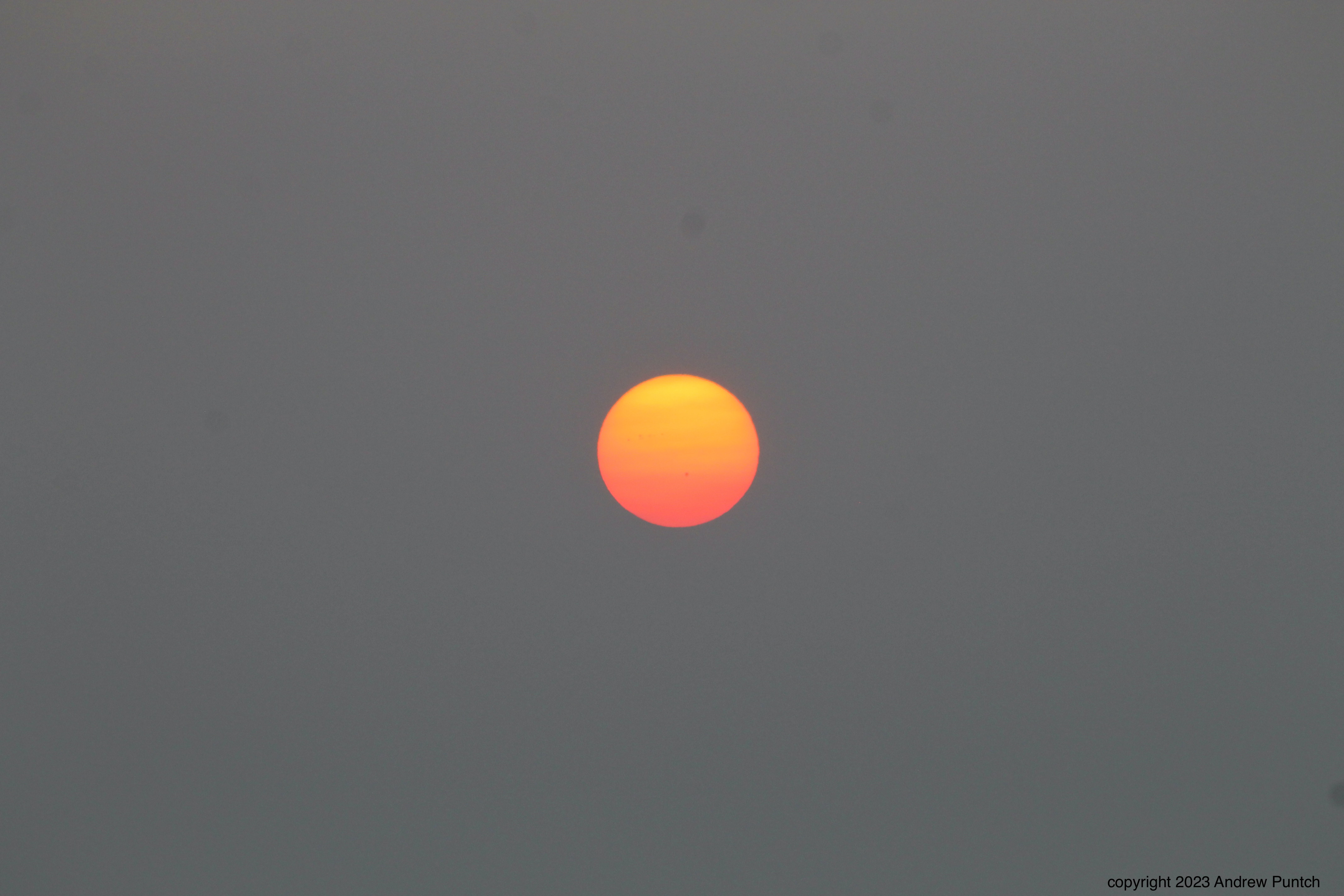 Wreathed by a thin sheet of cloud and haze, this morning the sun presented a dull yellow face.