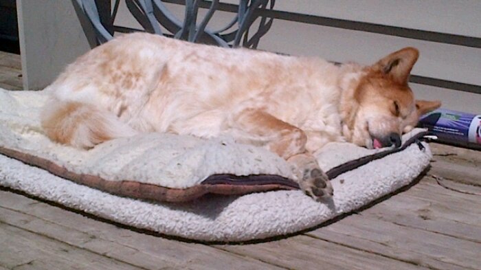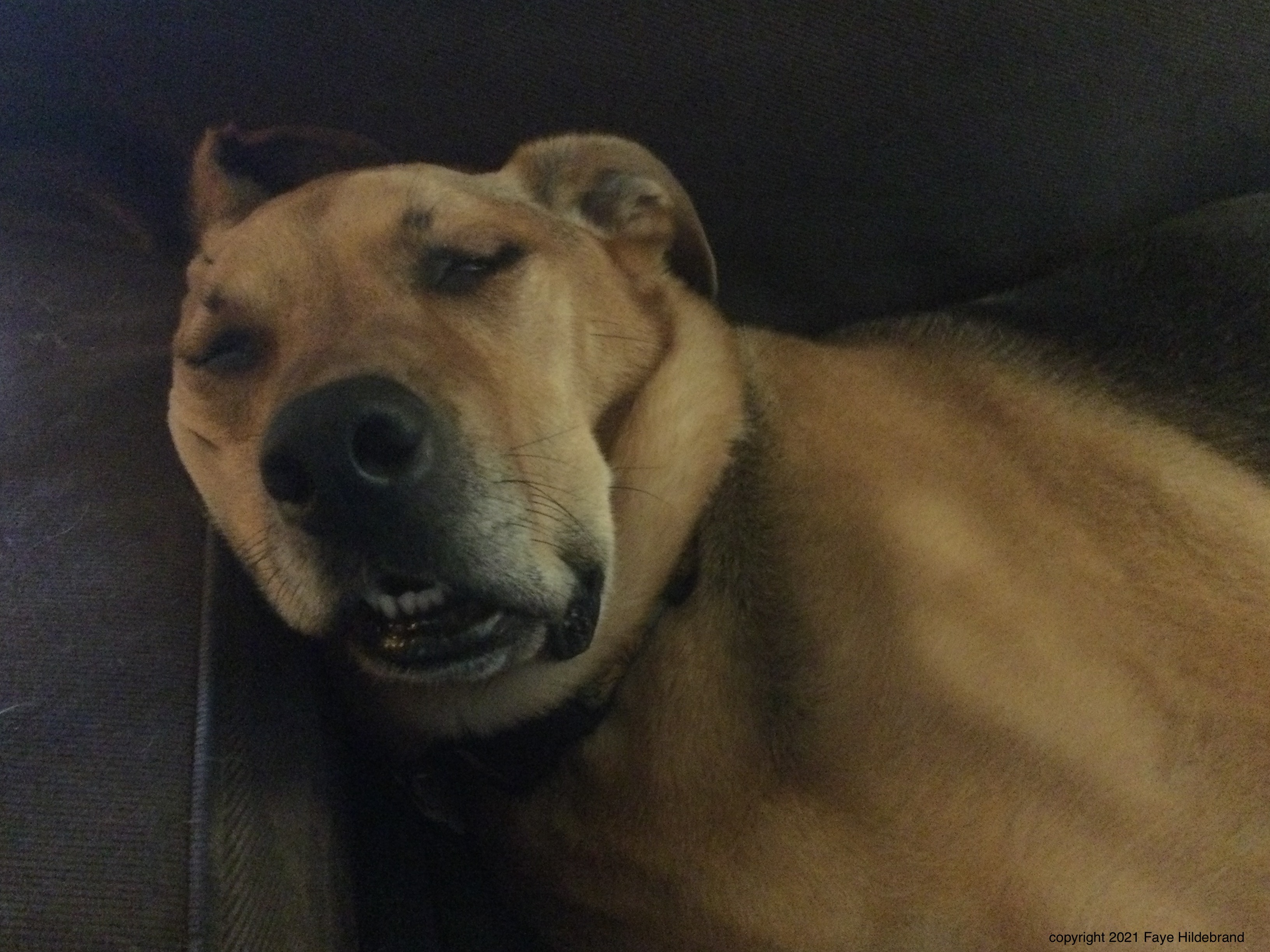 This is a poor quality photo but the look is priceless. Achilles completely relaxed. He is such a treasure, helps put my cares and concerns in perspective. I am so blessed, life is good.