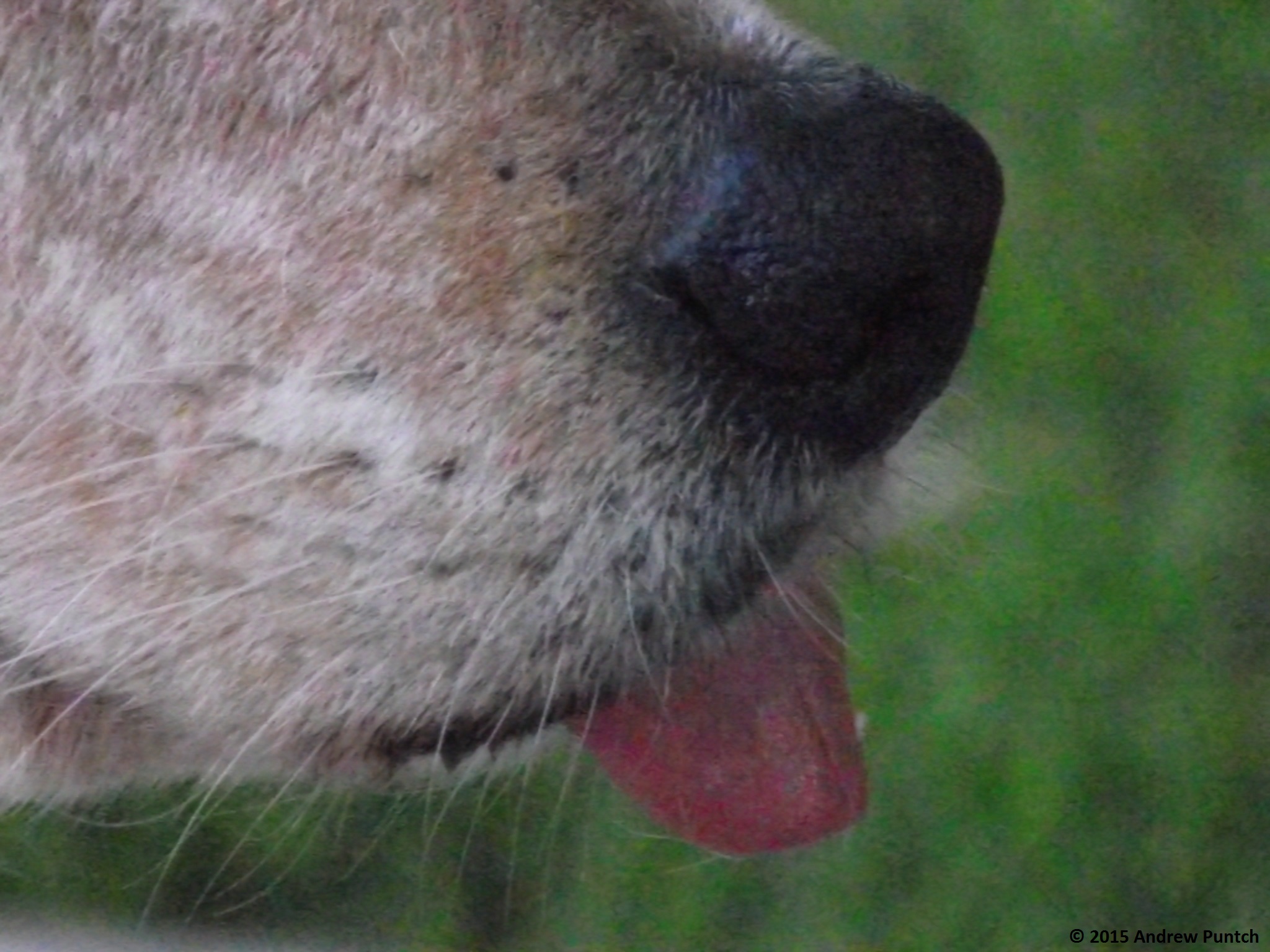 I did not capture Achilles in mid-lick, he was at ease, relaxed, tongue extended. He frequently does this, seemingly completely unaware that he is giving tongue.