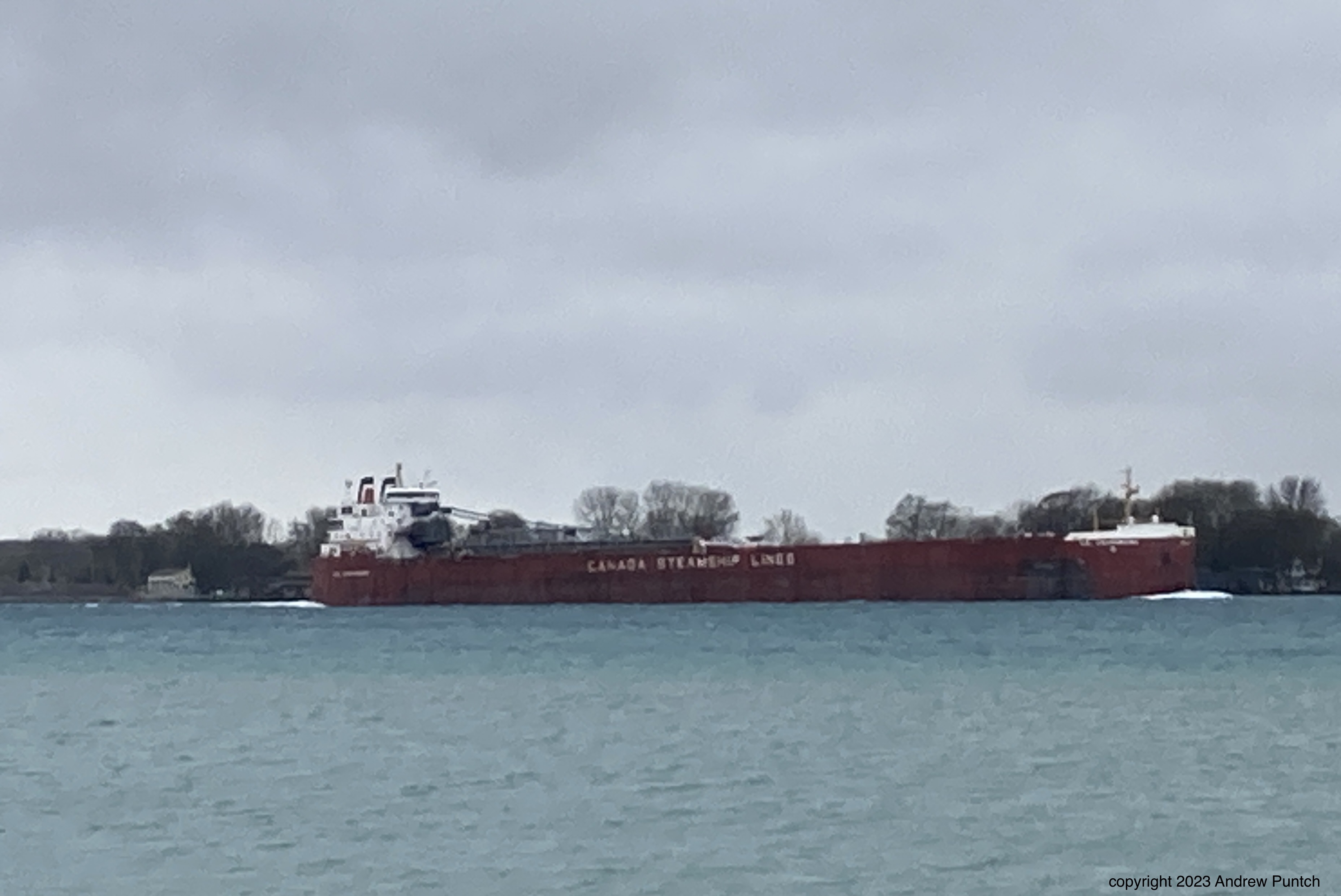 CSL Assiniboine, upbound on the St. Clair River on a cool breezy day.