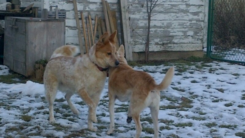 It is a fine day, about 38F and clear, so the cattle dogs and I celebrated by spending some time outside. they engaged in a bit of play while I enjoyed a cigar.