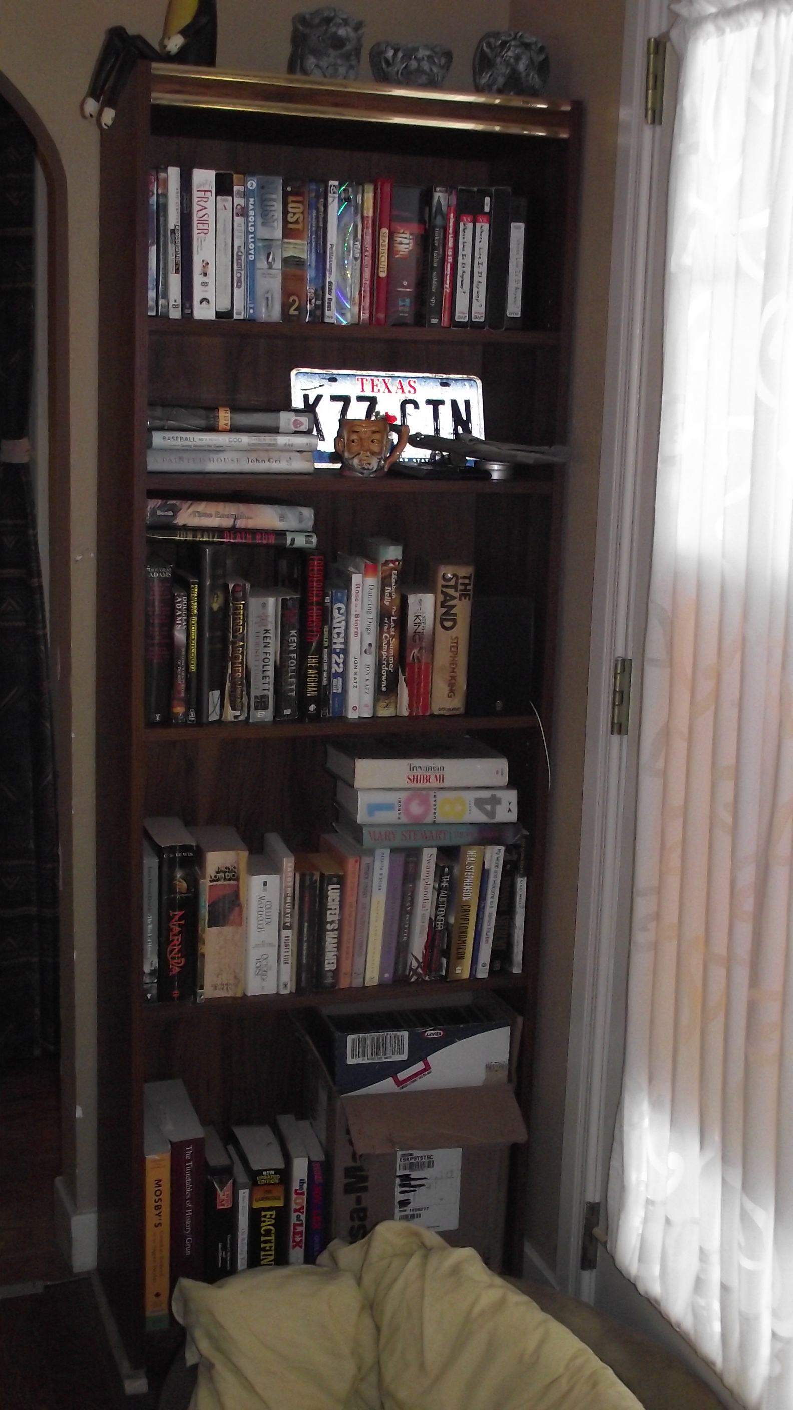 Faye recently found this bookcase at Sally Ann. It perfectly fits this space and is now loaded with our fiction collection, DVD and VHS (yes we will have VHS tapes!), and a few other things.