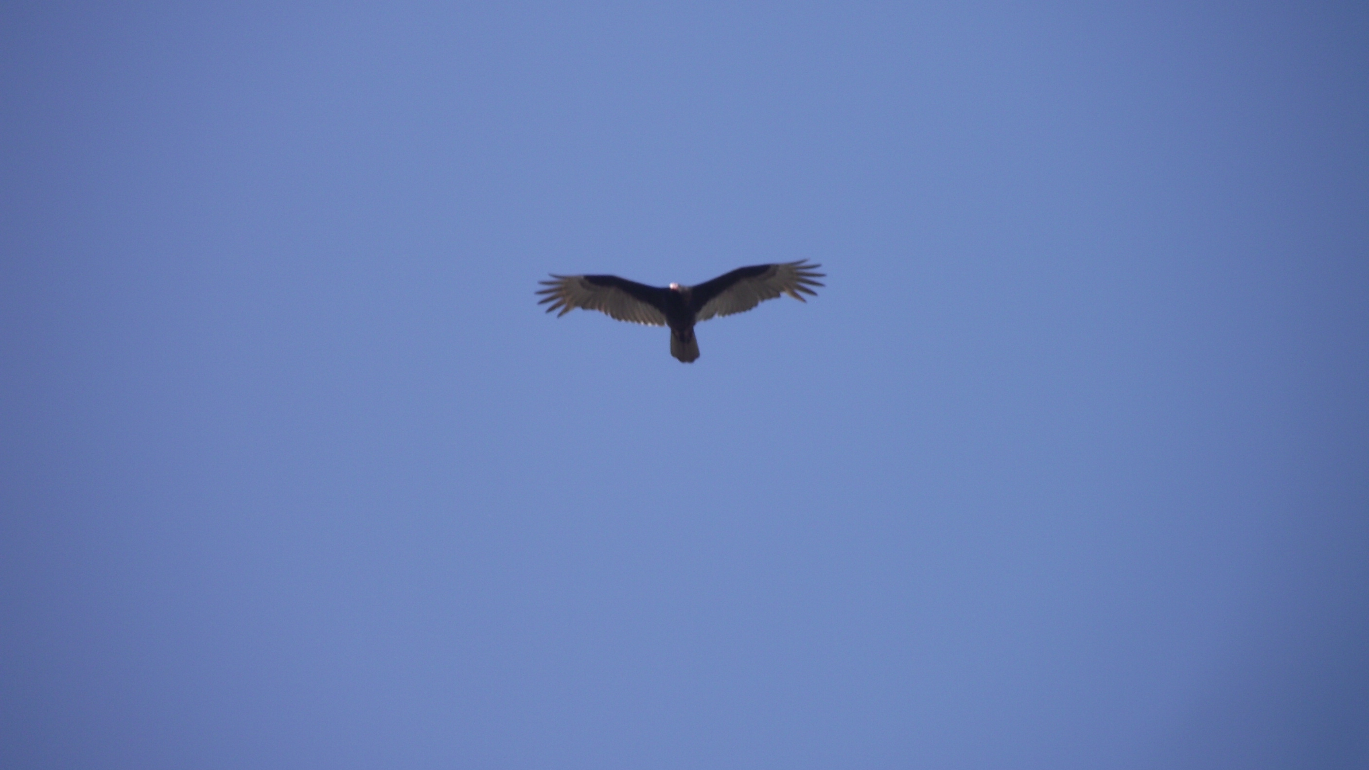 I waited almost too long to capture a soaring turkey vulture before it was obscured by a tree.