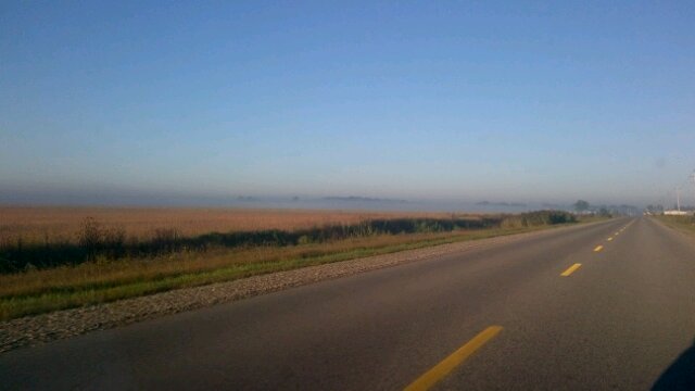 Thick fog obscures the view.
