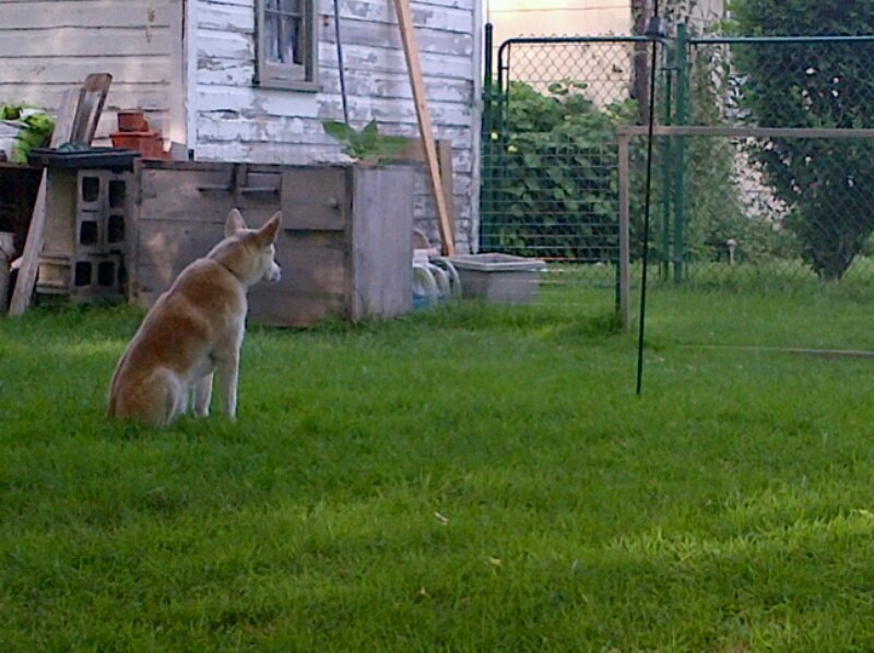 Stella ensures that the White-tailed Rabbit stays away from the vegetable garden. Fifteen minutes after first sighting Roger (or Rosie as the case may be) she is still on watch. Very little slips by Stella unobserved.