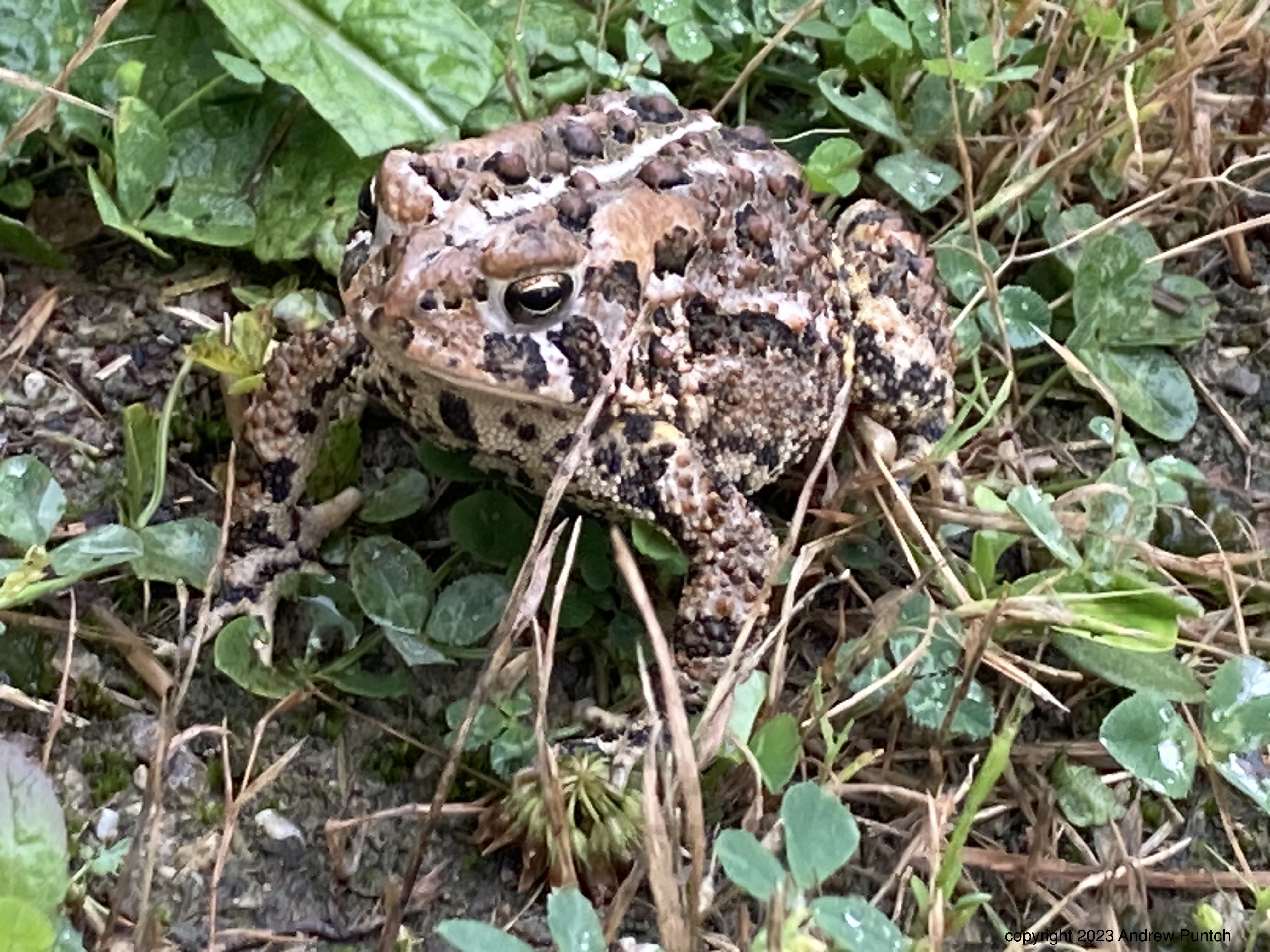 I do not know, cannot know, whether this one of our (at least two) resident chipmunks was resting, remaining motionless in an attempt to blend into the scenery, (anthropomorphising here) waiting for me to finish photographing it from about four meters away, or for another reason. Once I finished I called the dogs and we went inside so it had some undisturbed, safe time.
