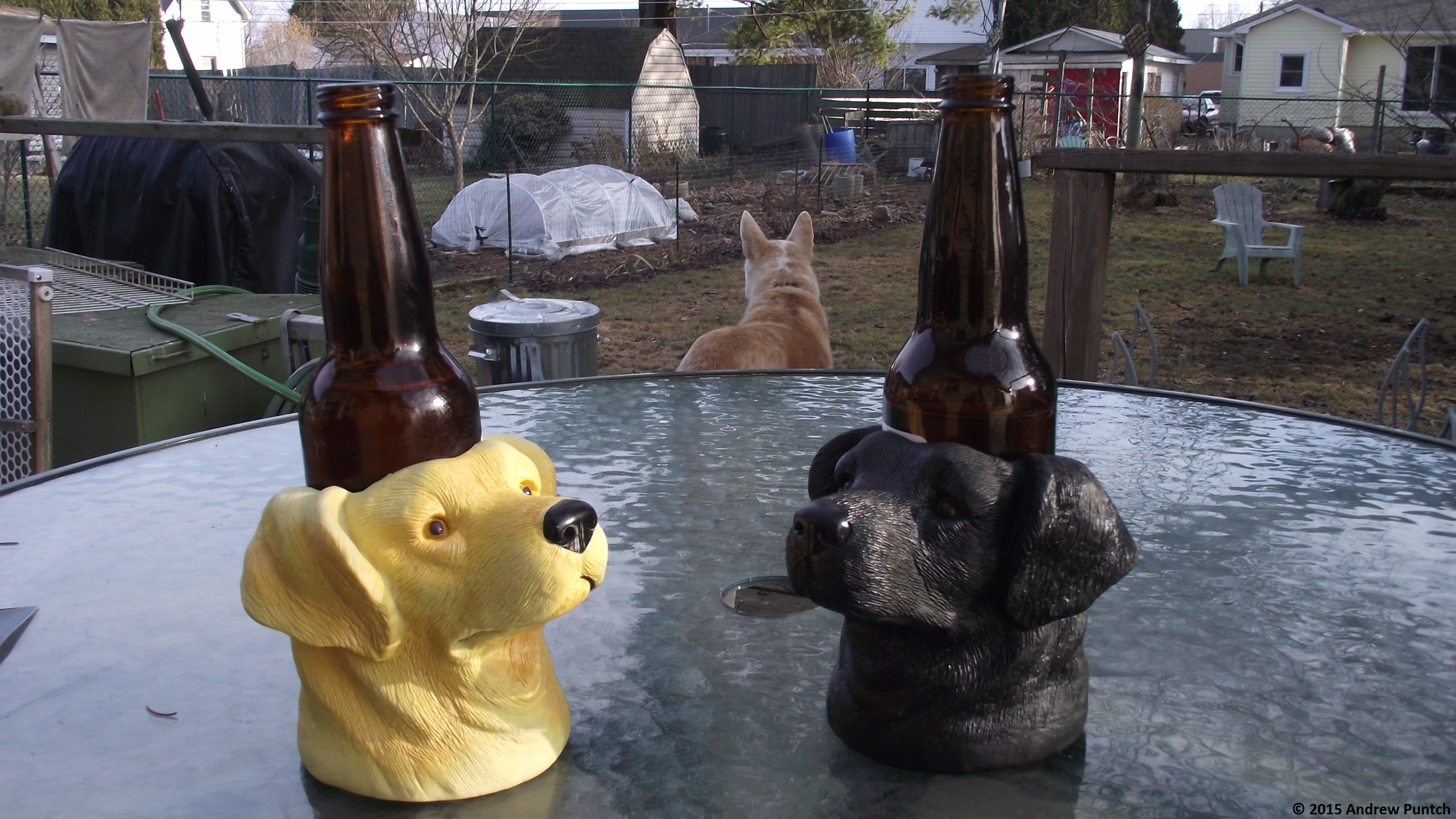 One day in 2005 as I power-walked Stella, this loose on the street Labx began following us. He was a friendly boy, didn’t seem too street- or car-savvy. I didn’t want him to get hit so I encouraged him to follow us. Very long story shortened, I named him Corndog (he was yellow, and round, and a dog, ergo Corndog). After a couple false starts he came to live with me. Our time together was cut unexpectedly short by his lymphoma diagnosis, and I had to let go of him in January 2007.